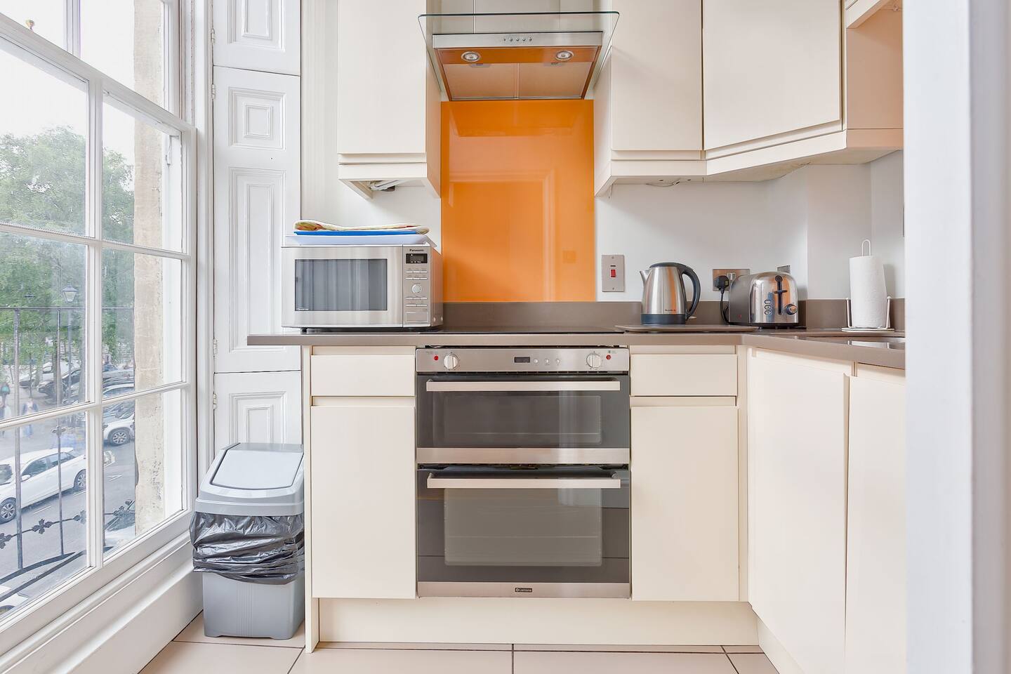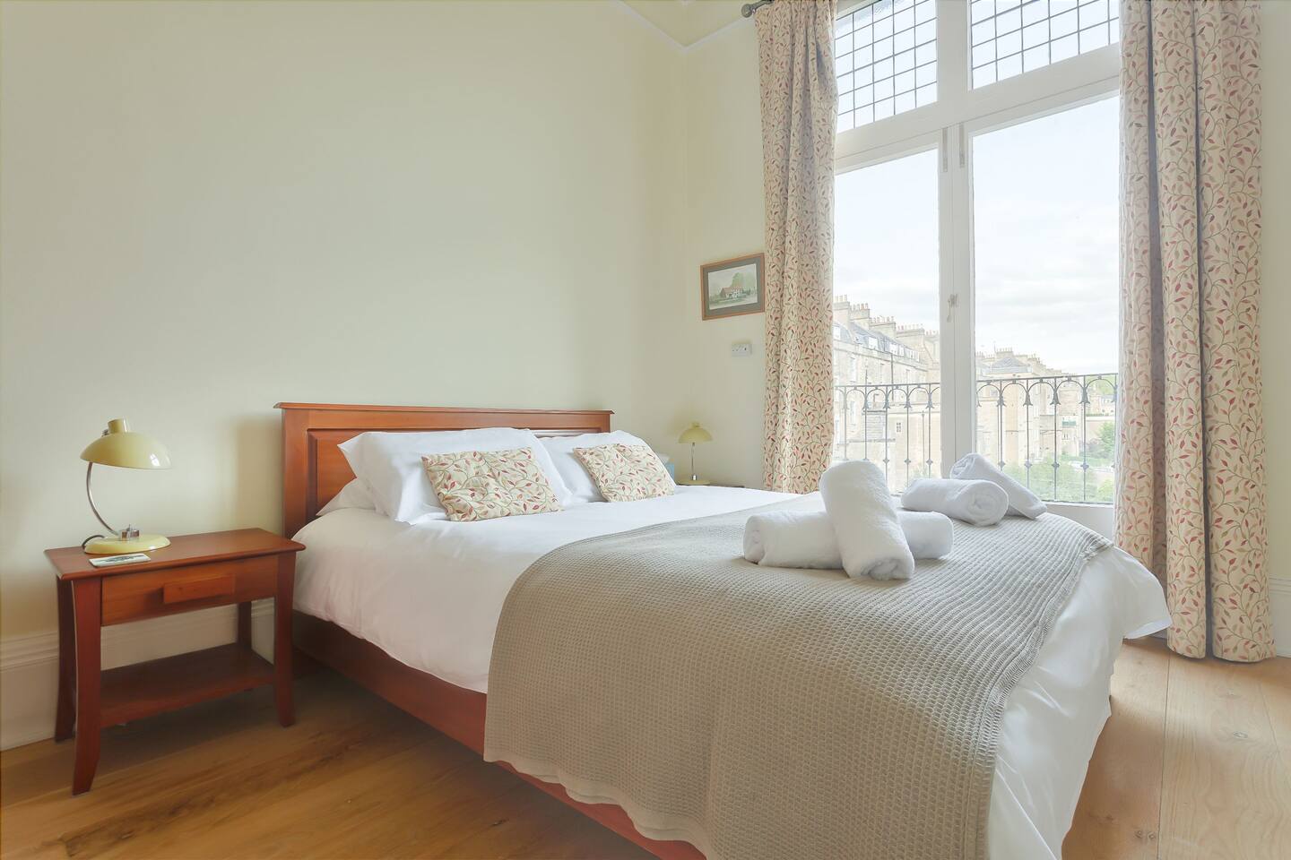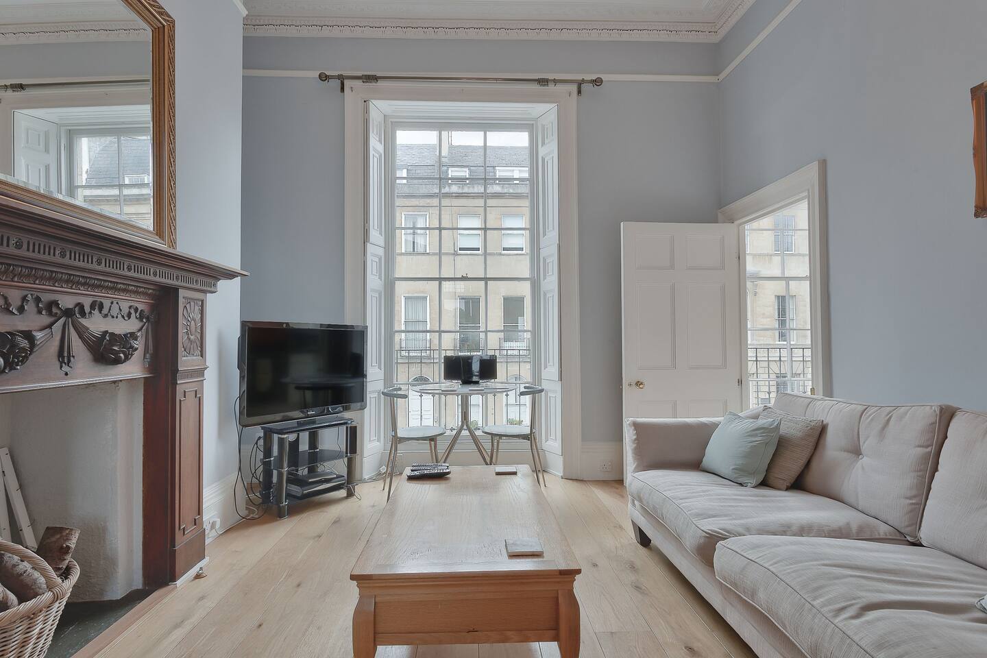 Sympathetically restored First Floor flat in Georgian townhouse with comfortable lounge, modern kitchen and spacious bedroom. Amazing corniced ceiling, Juliet balcony and large sash windows. Great central location, a few minutes walk from central Bath's restaurants, bars and amenities.