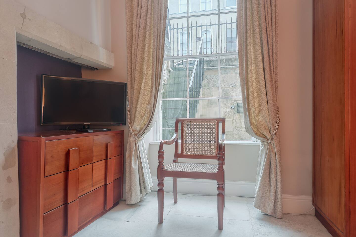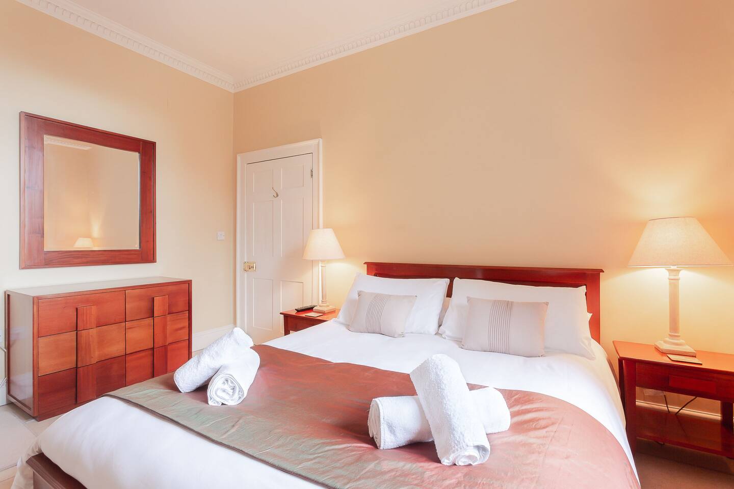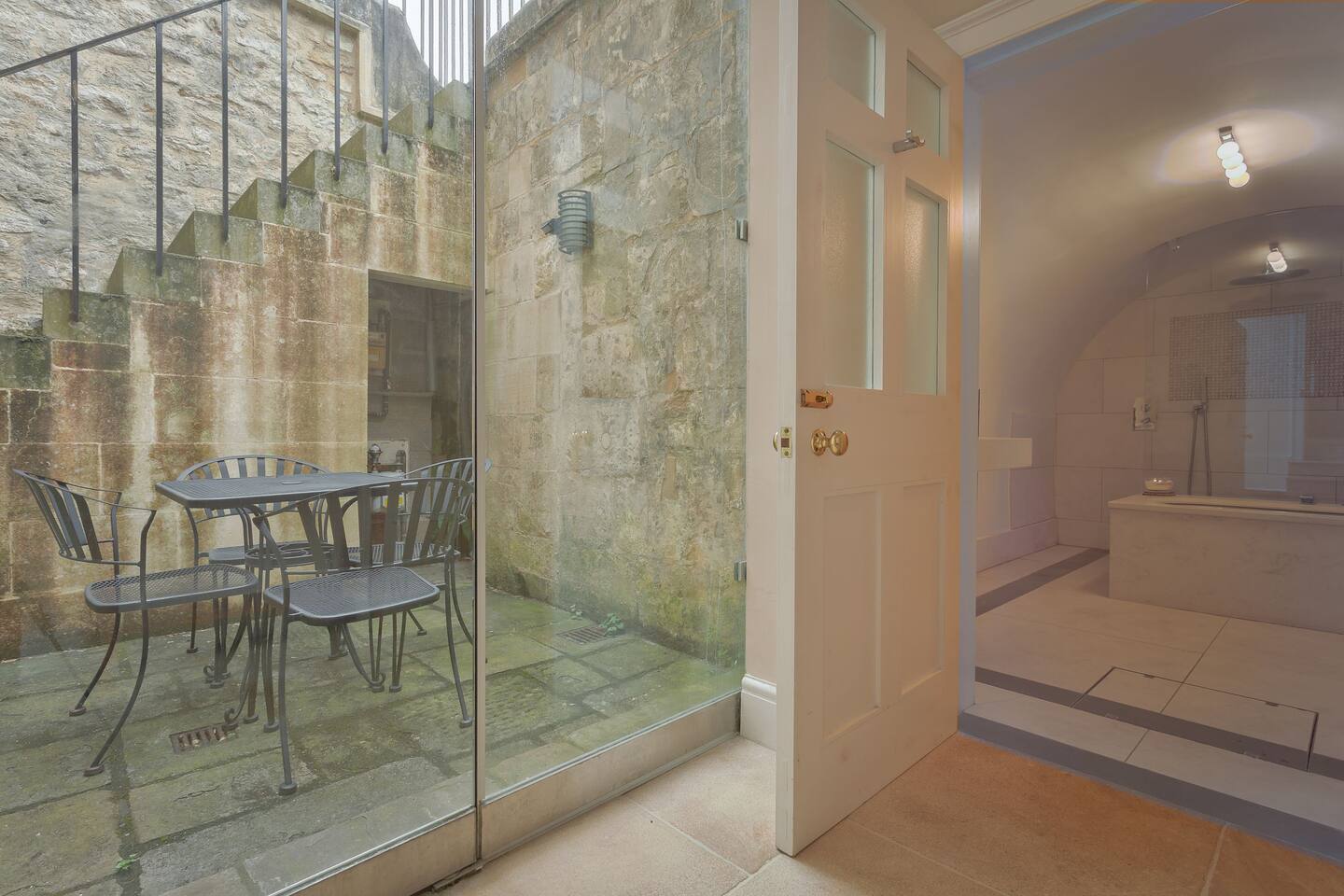 Lovingly restored Georgian flat arranged over two floors with two spacious bedrooms, two full bathrooms with toilet, jacuzzi bath & shower and one with shower and toilet. Separate kitchen with dining table and comfortable lounge. Includes a large garden with patio dining. This apartment is not suitable for children under 12 years.