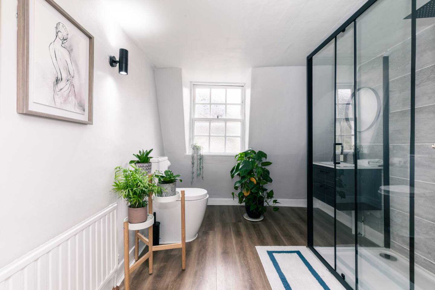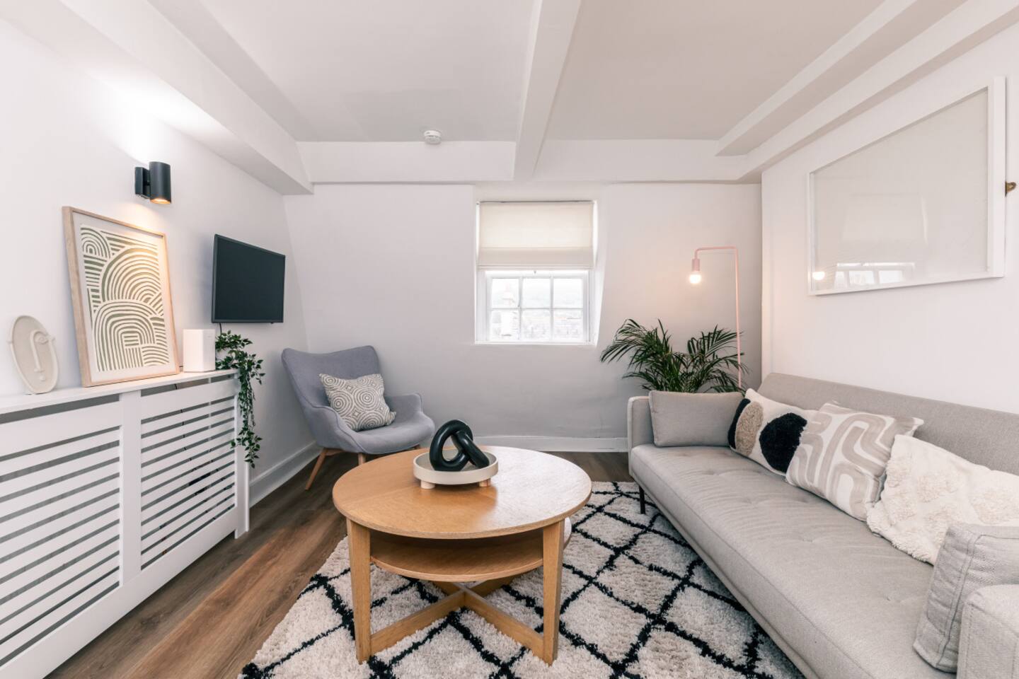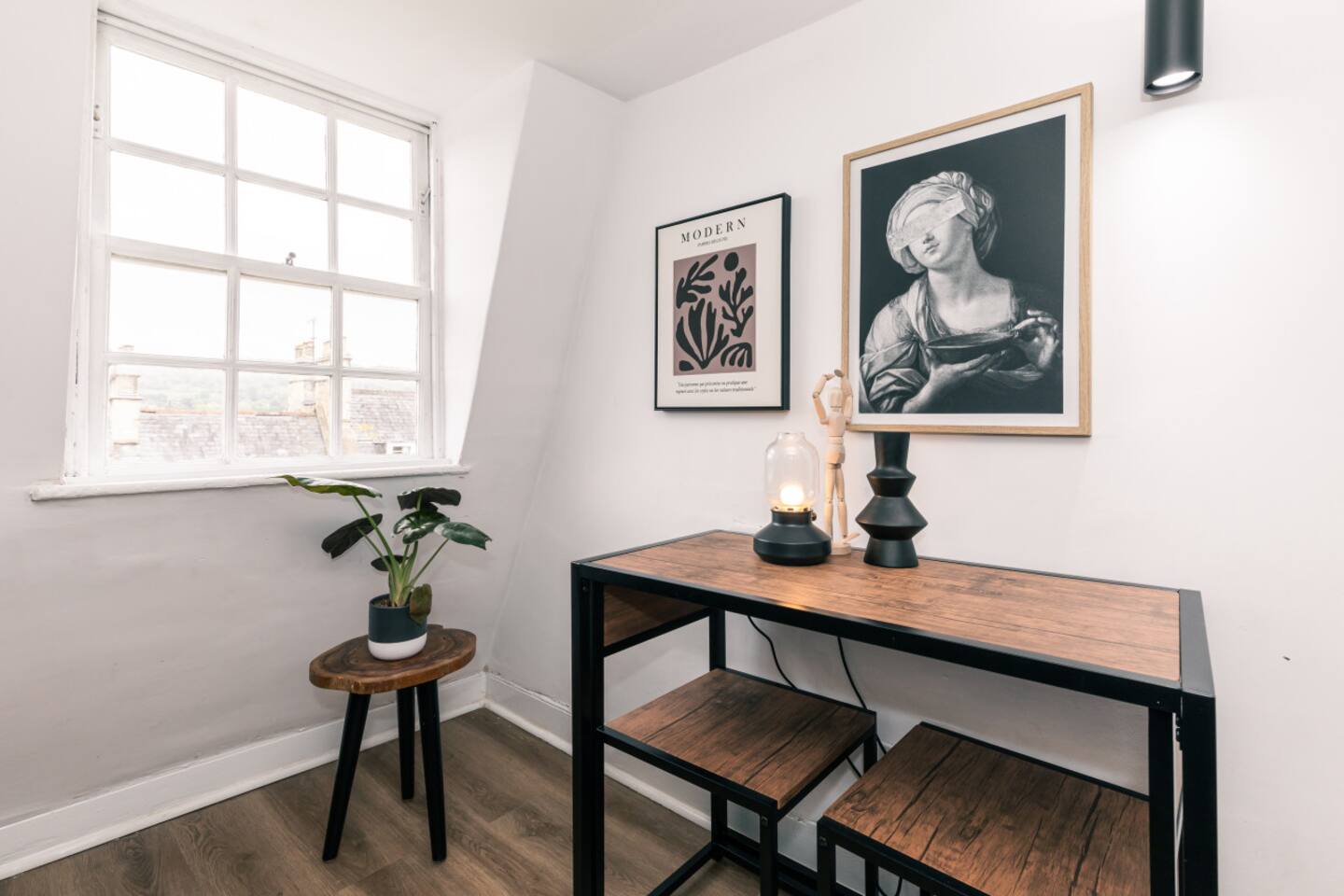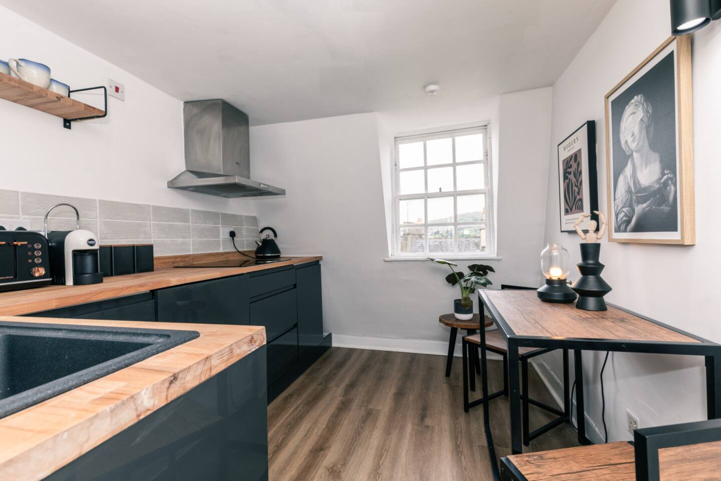 Our chic loft apartment is nestled in the heart of historic Bath. Perfectly situated for exploring all the city has to offer, our premium-quality furnished retreat promises comfort and style for our guests. As you step into our top-floor sanctuary, you'll be greeted by contemporary artwork adorning the walls, setting the tone for a modern and sophisticated stay. The spacious king-size bedroom offers a peaceful haven for a restful night's sleep. Unwind in the cozy living area, equipped with a smart TV for entertainment after a day of sightseeing. There is also a sofabed in the living room that turns into a small double. Whip up a delicious meal in the well-appointed kitchen, complete with all the essentials for a hassle-free stay. Make your morning coffee with the Lavazza coffee machine. Indulge in the luxury of our big walk-in rainfall shower, where you can rejuvenate and refresh before heading out to explore the vibrant streets of Bath. With its central location, our loft apartment is just moments away from the city's iconic landmarks, bustling shops, and eclectic eateries. Whether you're here for a romantic getaway or a family adventure, our stylish retreat offers the perfect base for your Bath escapade. Book now and experience the ultimate blend of comfort, convenience, and sophistication at our centrally located loft apartment. We can't wait to host you!