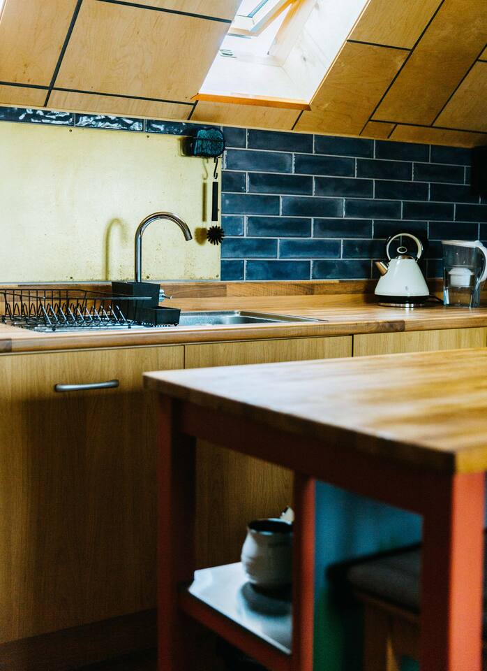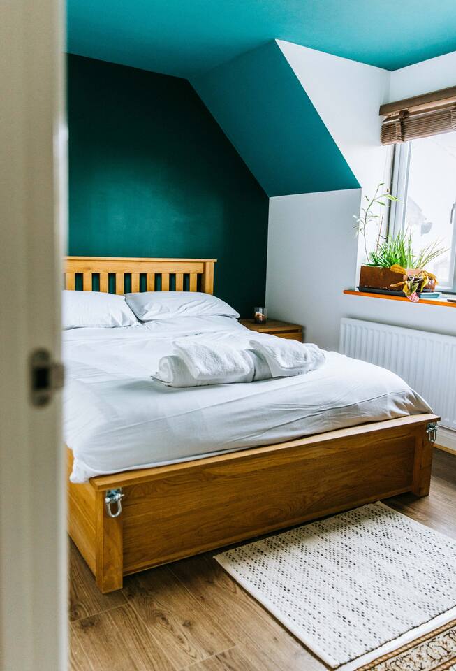Upon entering the space you'll climb a flight of stairs into a spacious open plan living kitchen area. The master bedroom is equipped with a king bed, fresh linens and towels. There is a spacious separate office with a desk and a house bathroom, complete with shower gel and toiletries.