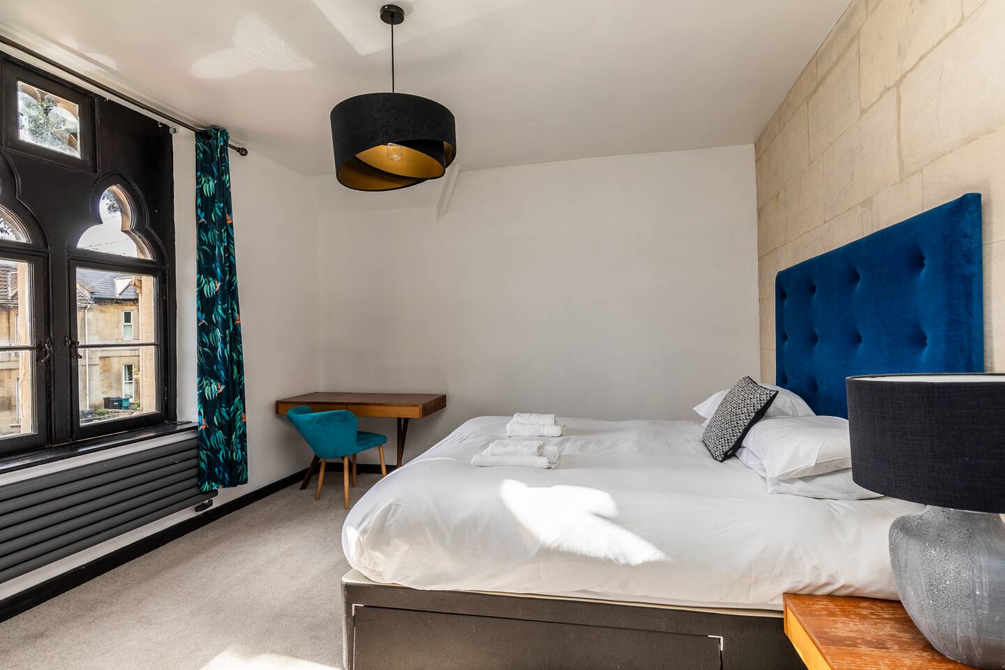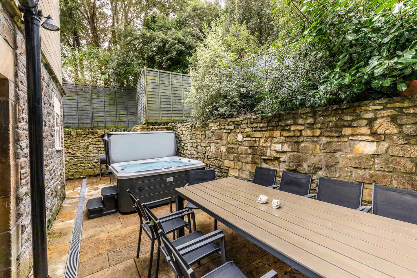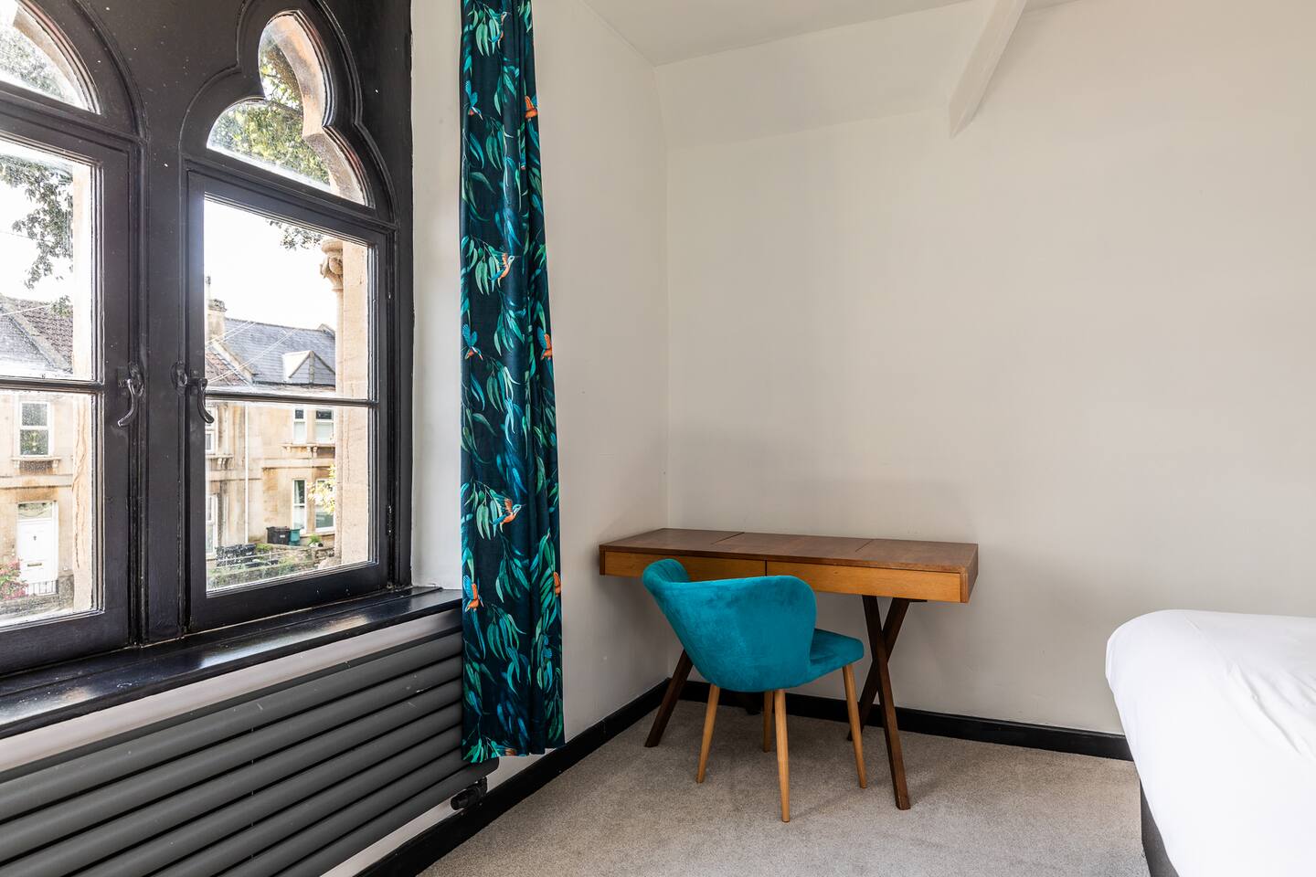 Surrounded by the lush greenery of one of Bath’s historic cemeteries, this beautiful and newly refurbished lodge house sleeps up to 10 guests in comfort and style. The Grade II listed building has been lovingly converted into a stunning four-bedroom holiday home with a generous well sheltered garden not overlooked by any neighbours. It is ideal for larger groups wishing to explore Bath and the surrounding area. The lodge has a large and fully equipped kitchen including oven, induction hob, microwave, fridge-freezer, dishwasher and washer/dryer as well as utensils and dining sets for at least 10 people. A special wine cooler will keep your favourite bottles stored just at the right temperature. Next to the kitchen is the living room with an expansive sofa, which can be extended into a double bed, and 43-inch smart TV. A master bedroom is on the ground floor with a king-size bed and toilet & shower room next door. You can exit into the paved garden through a door at the back of the house, where you'll find a barbeque and table & chairs ready for some al fresco dining when the sun comes out. Upstairs guests you will find three more bedrooms, a second master bedroom boasting a super-king double bed, one room with two zip and link singles that can be joined to form a super-king double bed, and one twin room with two single beds. A family bathroom with a bath, shower and toilet is also on the first floor. The property has been elegantly refurbished in a classic contemporary style in keeping with the mid-19th century building’s heritage and Gothic architectural detail. There is wifi throughout the house and private off-street parking for two cars. There is also free on-street parking, but finding spaces can be a challenge sometimes. There is CCTV monitoring the car park and the outside of the house. The lodge is just 25 minutes walk along the River Avon from Bath’s historic centre making it a great Bath city break base.
