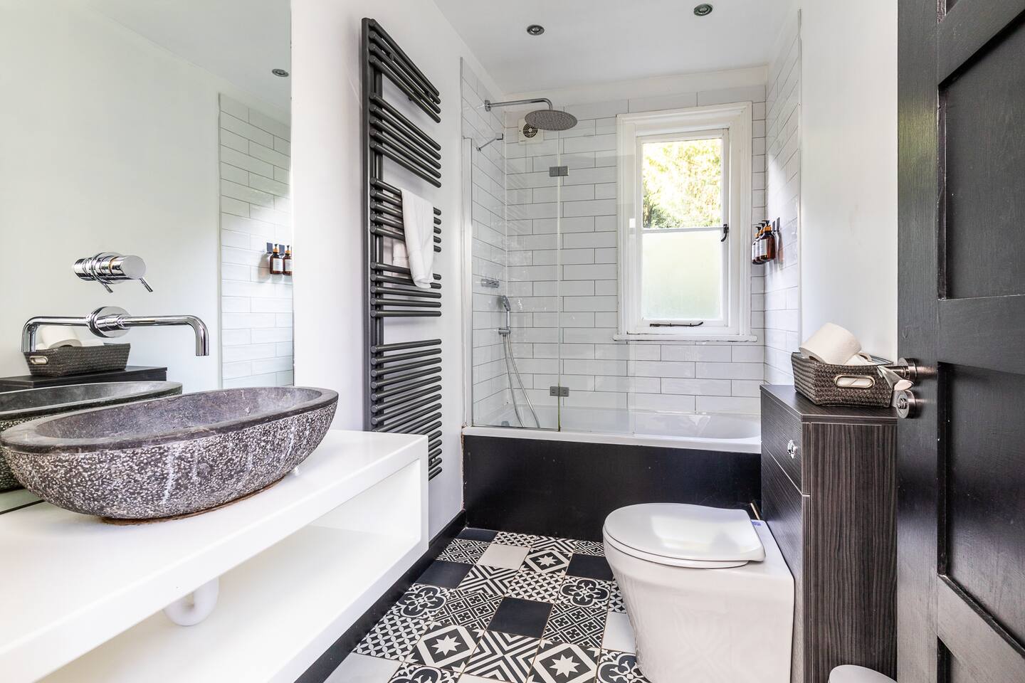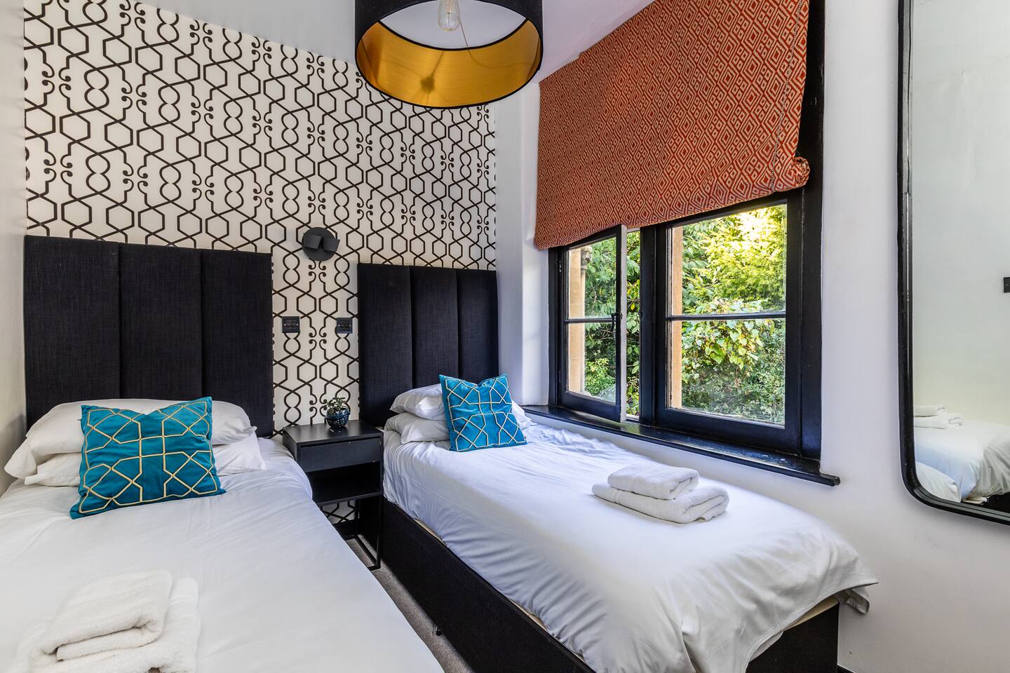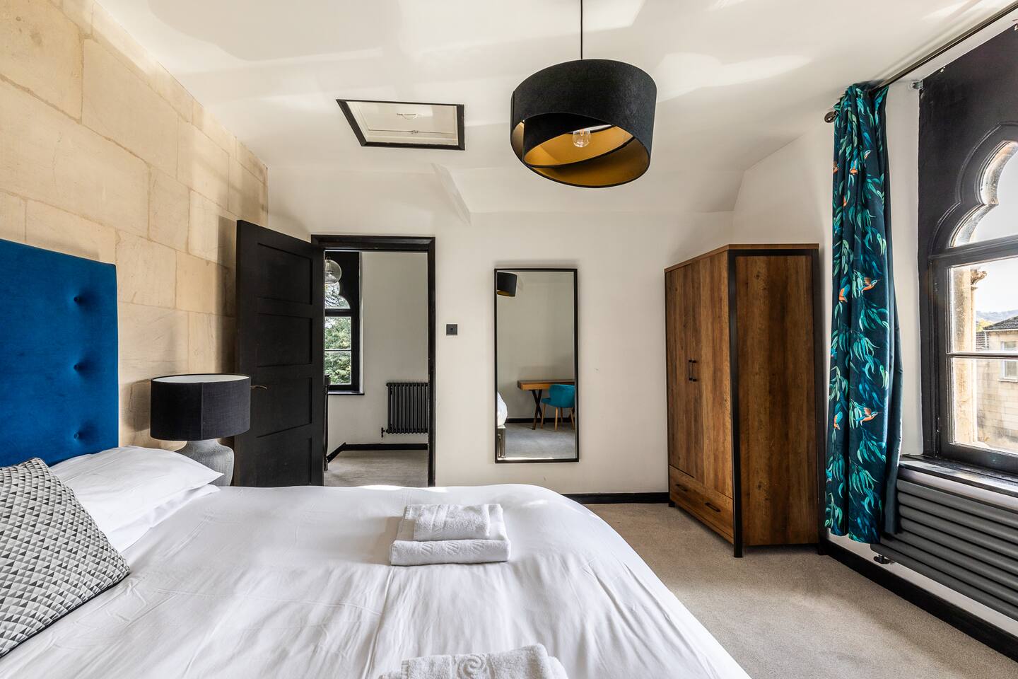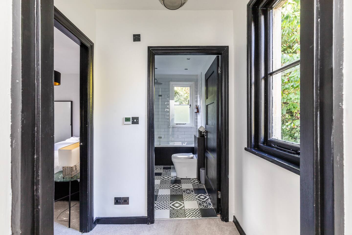 Surrounded by the lush greenery of one of Bath’s historic cemeteries, this beautiful and newly refurbished lodge house sleeps up to 10 guests in comfort and style. The Grade II listed building has been lovingly converted into a stunning four-bedroom holiday home with a generous well sheltered garden not overlooked by any neighbours. It is ideal for larger groups wishing to explore Bath and the surrounding area. The lodge has a large and fully equipped kitchen including oven, induction hob, microwave, fridge-freezer, dishwasher and washer/dryer as well as utensils and dining sets for at least 10 people. A special wine cooler will keep your favourite bottles stored just at the right temperature. Next to the kitchen is the living room with an expansive sofa, which can be extended into a double bed, and 43-inch smart TV. A master bedroom is on the ground floor with a king-size bed and toilet & shower room next door. You can exit into the paved garden through a door at the back of the house, where you'll find a barbeque and table & chairs ready for some al fresco dining when the sun comes out. Upstairs guests you will find three more bedrooms, a second master bedroom boasting a super-king double bed, one room with two zip and link singles that can be joined to form a super-king double bed, and one twin room with two single beds. A family bathroom with a bath, shower and toilet is also on the first floor. The property has been elegantly refurbished in a classic contemporary style in keeping with the mid-19th century building’s heritage and Gothic architectural detail. There is wifi throughout the house and private off-street parking for two cars. There is also free on-street parking, but finding spaces can be a challenge sometimes. There is CCTV monitoring the car park and the outside of the house. The lodge is just 25 minutes walk along the River Avon from Bath’s historic centre making it a great Bath city break base.