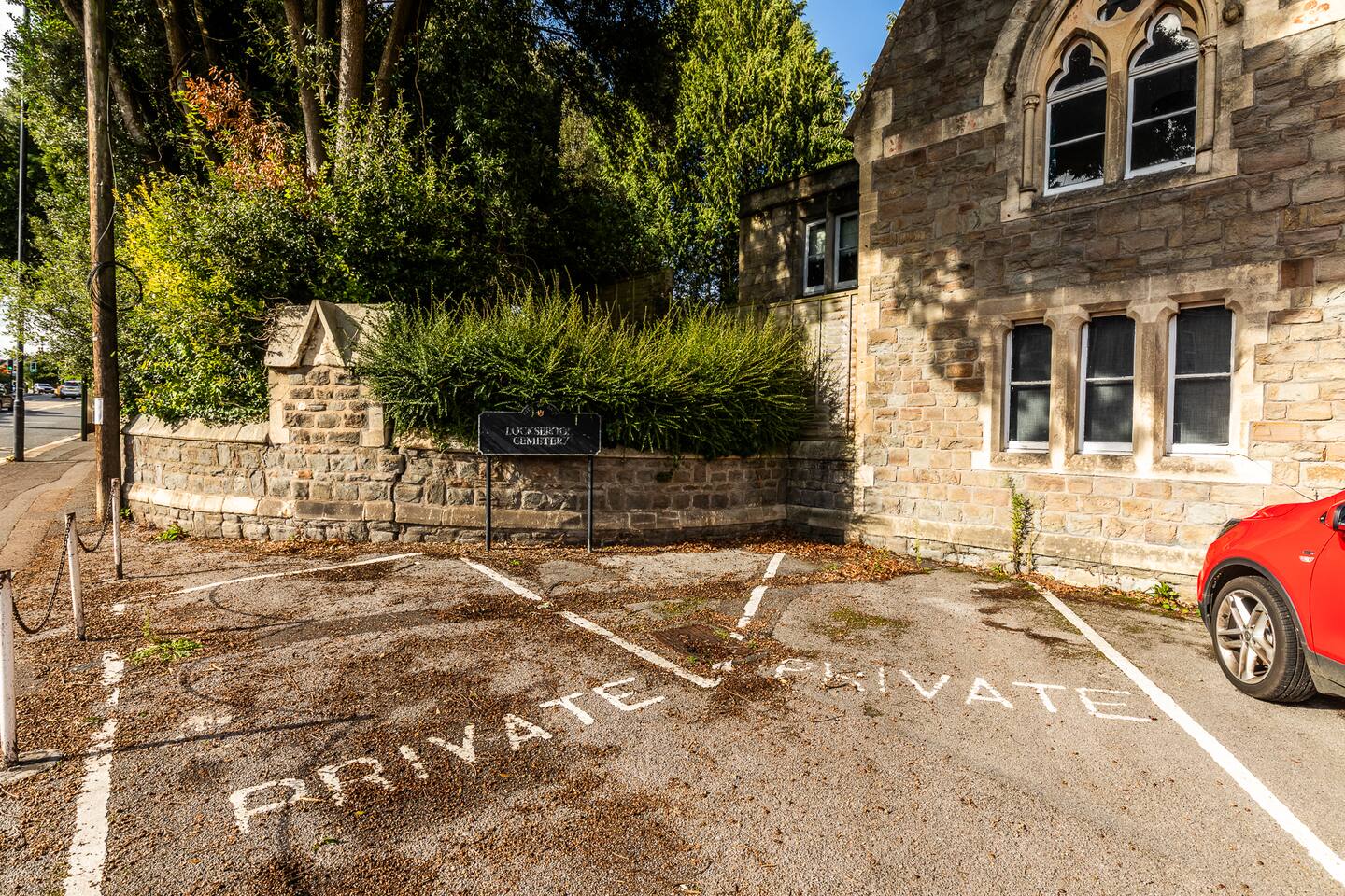 The property is in the grounds of the cemetery.